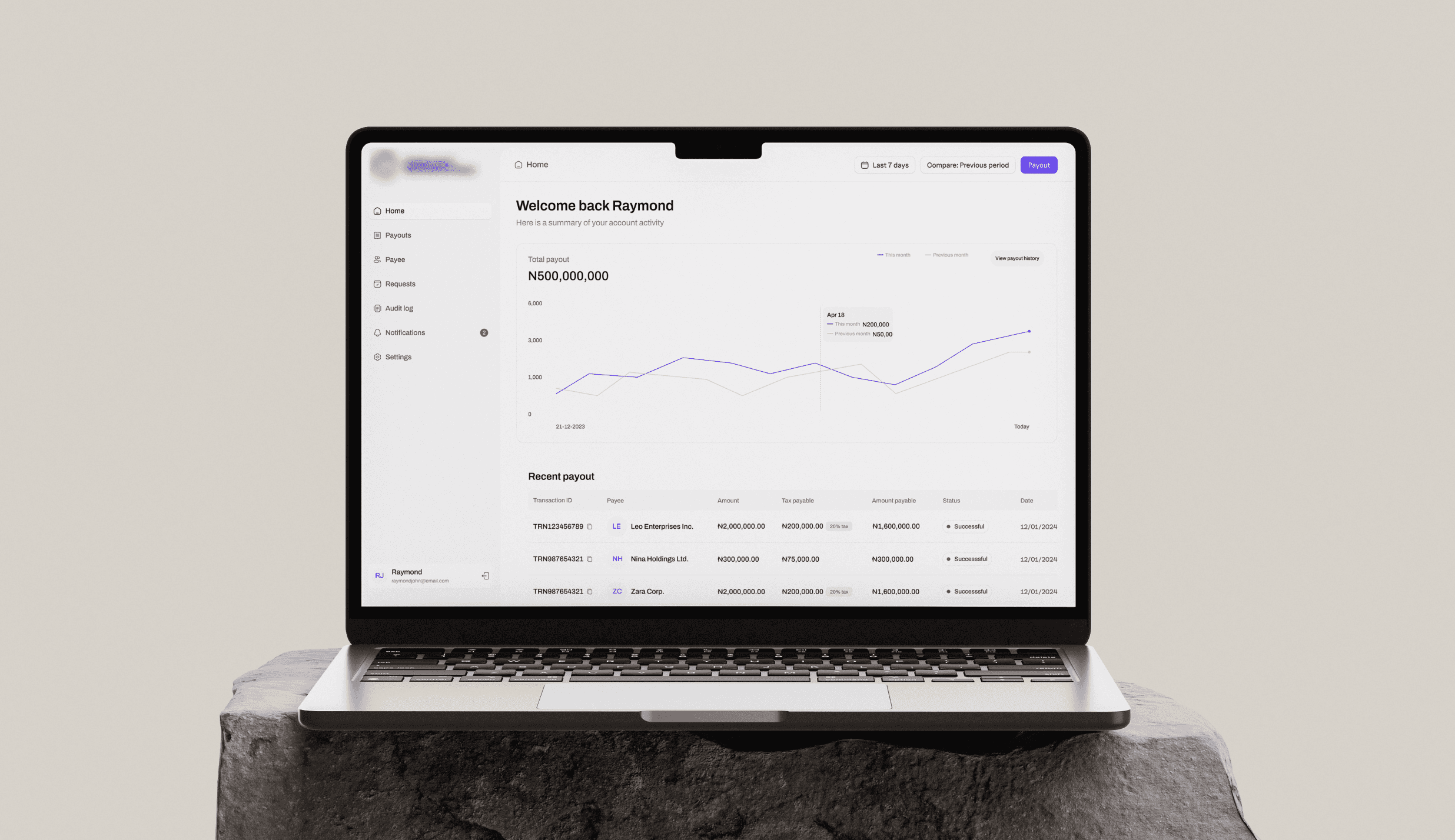 Buisness intelligence dashboard for seamless payout